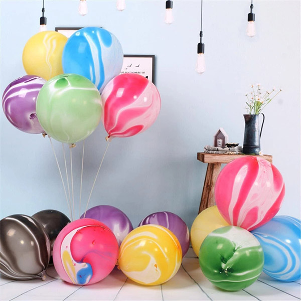 Tá an balún LaTex Agate a tháirgeann Monarcha Balún Niun® déanta as laitéis ardcháilíochta, atá buan agus álainn, nach bhfuil aon bholadh speisialta aige, agus tá sé níos sábháilte le húsáid, mar sin tá níos mó cinnte go n-úsáidfidh an teaghlach agus na cairde. Is furasta an balún LaTeX a cheangal, is féidir leis an stát teannta a choinneáil ar feadh i bhfad, agus níl sé éasca é a phléascadh. Tá an balún laitéis agate seo ar fáil i 7 datha, ar dath measctha iad, dubh, dearg, corcra, gorm, glas agus buí, agus tá na méideanna 10 n -orlach agus 12 orlach. Déanaimid 100 píosa balúin laitéis a tháirgeadh i mála. Má tá riachtanais chainníochta eile agat, is féidir linn cainníocht gach mála de bhalúin agate a choigeartú duitse. Is iad balúin laitéis marmair na balúin is coitianta agus is féidir iad a úsáid le haghaidh go leor ócáidí maisiúla chun atmaisféar aoibhinn a chur le do pháirtí.