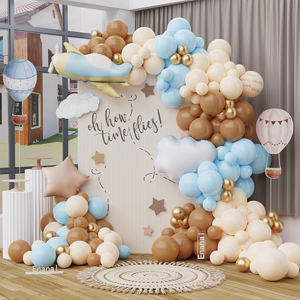 Garland balún le balún scragall eitleáin:Tá an balún seo garlands le balún scragall eitleáin comhdhéanta debalúin laitéis, balúin scragall, spotaí gliú balún, línte iascaireachta agus gabhálais balún eile. Is féidir úsáid a bhaint as na gabhálais seo cabhrú leat áirse balún a chruthú go héasca. Tá ár balúin laitéis agus balúin scragall déanta as rubar nádúrtha agus ábhair scragall alúmanaim ardchaighdeáin, atá sábháilte agus neamh-tocsaineach agus is féidir leo áirse garland balún álainn a chruthú. Tá an garland balún eitleán seo oiriúnach le haghaidh réimse radhairc téamaí, lena n-áirítear páirtithe lá breithe, páirtithe téamaí eitleáin, páirtithe téamaí cuileoga ama, agus páirtithe baisteadh leanaí. Tá sé foirfe chun teagmháil dath a chur le haon cheiliúradh.