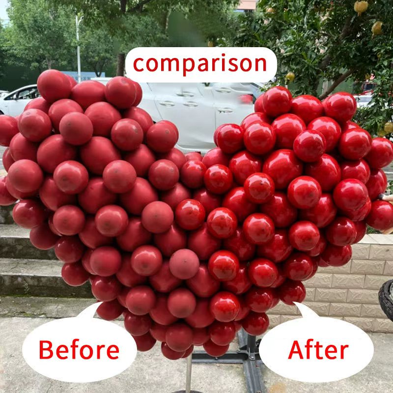 Is iad an t -am agus an taise na naimhde nádúrtha a bhaineann le Shine Balúin. Ní hamháin go gcuireann an scannán cosanta a chruthaíonn spraeála Shine Base Balloon Borun le gile ach feidhmíonn sé mar bhac láidir freisin. Glasálann sé go héifeachtach i dtaise laistigh den bhalún, ag moilliú ocsaídiúcháin go mór agus ag cur cosc ar roic agus ag dul in aois go tapa mar gheall ar thriomú. Ina theannta sin, cuireann a n-airíonna frith-cheo cosc ar cheo dromchla de bharr luaineachtaí teochta idir lá agus oíche, nó idir teochtaí laistigh agus lasmuigh, ag cinntiú go gcoinníonn balúin a snas bríomhar, ard in aon timpeallacht. Maireann an éifeacht snasta ar feadh níos mó ná 72 uair an chloig.