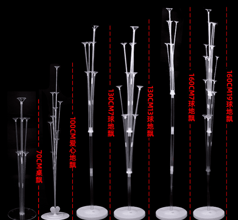 Tá trí chuid ann: bonn, post ina seasamh agus plunger. Tá dhá stíle ag an mbonn, an gnáth -cheann agus an bonn insteallta uisce. Tá cobhsaíocht níos láidre ag an mbonn insteallta uisce. Fágann meáchan an uisce go bhfuil an bonn níos troime chun cosc a chur ar an seastán titim faoi ghníomh na gaoithe nó an fhórsa sheachtraigh. Tá go leor jacks dáilte go cothrom ar an bpost díreach, rud atá áisiúil chun sealbhóirí balúin a chur isteach ar airde éagsúla agus a shocraíonn an balún go daingean ar an plunger, go gcruthaíonn sé éifeacht crann balún ordlathach, maisiú álainn agus gur féidir leis an leagan balún a choigeartú ag uacht, níos mó solúbthachta. A úsáidtear go coitianta i malls siopadóireachta, ceiliúradh saoire agus ócáidí eile de mhaisiú.