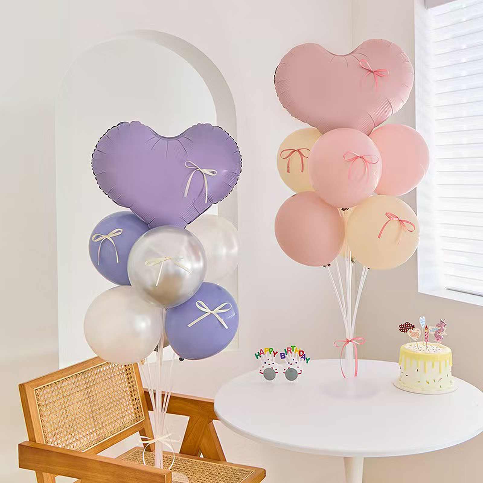 Tá an bonn sách beag agus fíorálainn, go ginearálta tá an bonn cruinn nó cearnógach, ar féidir é a chur ar an mbord go réidh. Leis an gcolún gearr agus an tslat tacaíochta balún, tá an dearadh simplí, áisiúil agus praiticiúil. Tríd an balún a shocrú ar an tslat tacaíochta, cruthaítear an balún chun snámh go héadrom. Tá an éifeacht amhairc oiriúnach le haghaidh maisiú boird in ócáidí mar pháirtithe lá breithe, féasta teaghlaigh nó dinnéir cuideachta, ag cur eilimintí searracha agus bríomhar leis, agus ag áitiú spás beag, atá áisiúil le haghaidh suiteáil agus dí -chomhshuite tapaidh.