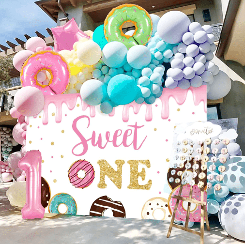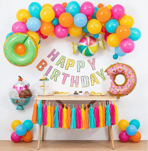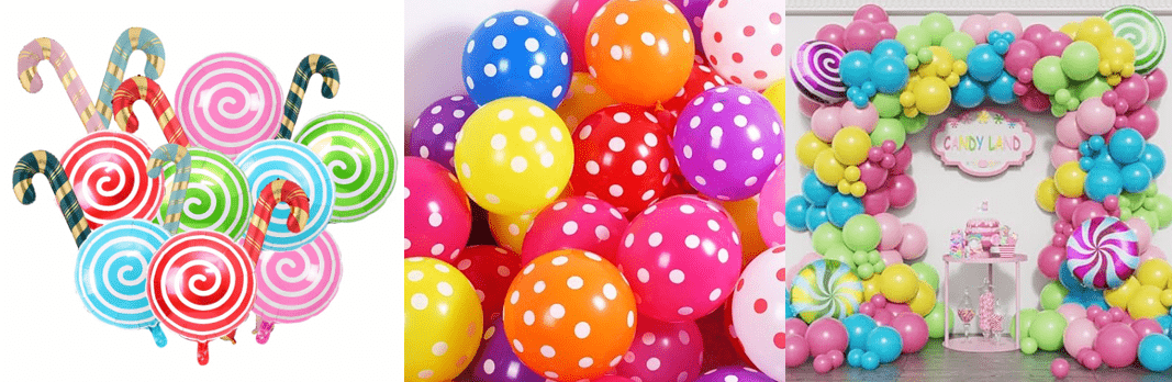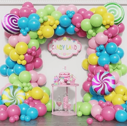 Kit garland balún téama candy le dath candy aisling milis agus cruth líreacáin gleoite mar na príomhghnéithe dearaidh, tá an stíl iomlán bríomhar agus milis.
