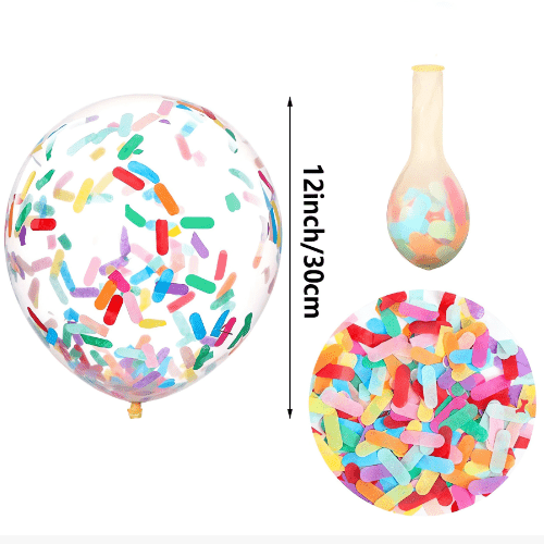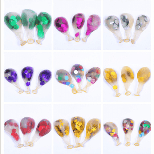 De ghnáth úsáideann balúin confetti balúin laitéis trédhearcach 12 orlach Tá 1g de confetti i ngach balún agus is féidir le gach pacáiste 100 ríomhaire a shealbhú. Baintear úsáid go minic as balúin confetti den mhéid seo agus bíonn torthaí níos fearr acu, cibé acu i bhfeisteas balún beag nó feisteáin fhleasc balún.
