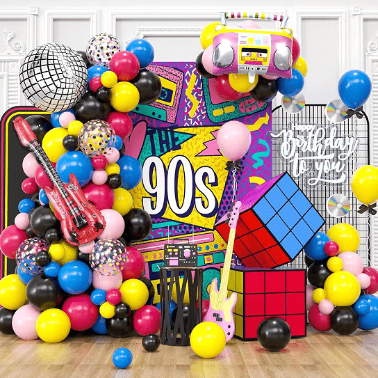 Tá feisteáin garland balún dioscó déanta as laitéis ardchaighdeáin, nach bhfuil sé éasca le pléasctha. Tá an balún stylish seo ildaite agus foirfe le haghaidh imeachtaí éagsúla, lena n-áirítear maisiúcháin páirtí le téamaí dioscó, páirtithe téamaí amhránaí baineann, maisiúcháin páirtí téamaí 70s, 80s agus 90s, chomh maith le maisiúcháin lá breithe na bhfear agus na mban. Ní gá gabhálais bhreise a bheith ag na feisteáin garland balún dioscó a chuirimid ar fáil, agus is féidir le daoine nua iad a chur le chéile go héasca. Is feisteáin aon-stad atá cost-éifeachtach agus saor ó imní. Chomh maith le páirtithe téama, is féidir iad a úsáid freisin le haghaidh páirtithe baitsiléara, páirtithe lá breithe, gníomhaíochtaí cuideachta, etc. Is minic a úsáidtear iad mar mhaisiúcháin iontrála, cláir chúlra grianghraf nó táblaí milseog.