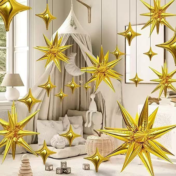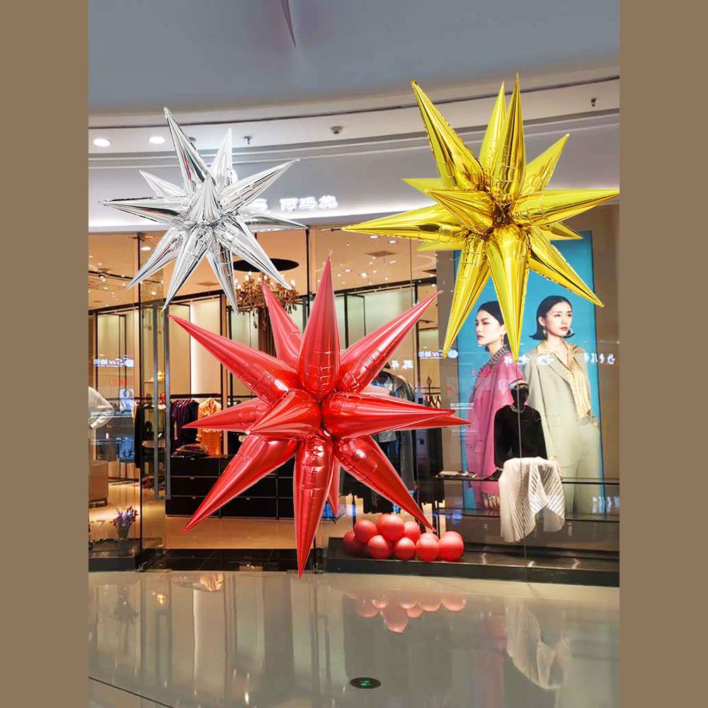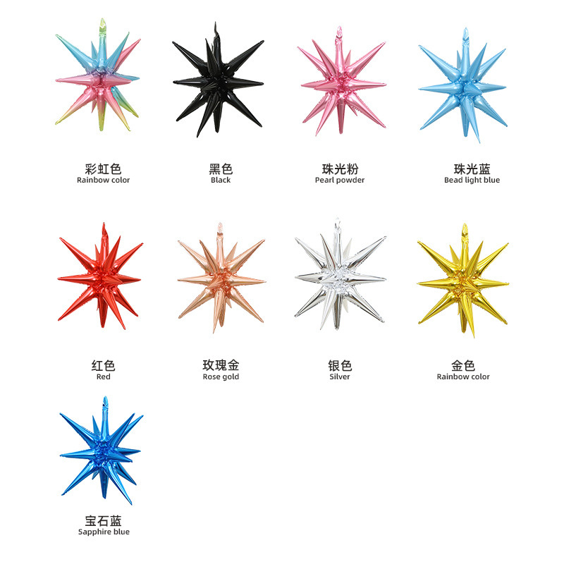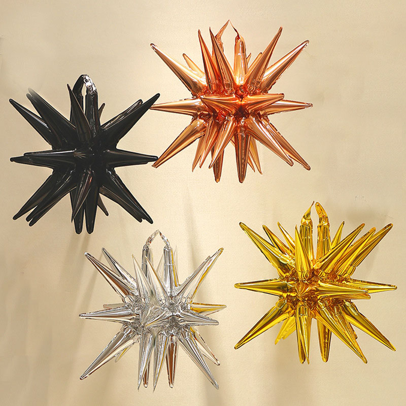 Balúin scragall réalta aon phíosa atá ag pléascadh: Ar fáil i dhá mhéid: 22 orlach agus 27 orlach. Tá an méid 22-orlach níos lú agus oiriúnach do sheomraí agus d'oifigí codlata, rud a chiallaíonn go bhfuil sé foirfe do mhaisiú lá breithe. Tá an méid 27-orlach níos oiriúnaí do spásanna níos mó amhail hallaí féasta agus fuinneoga ionad siopadóireachta. Fiú má tá sé crochta ard, is féidir an patrún a fheiceáil go soiléir.