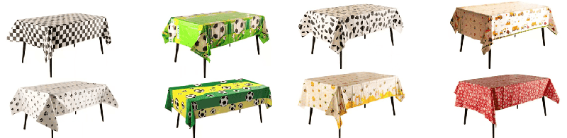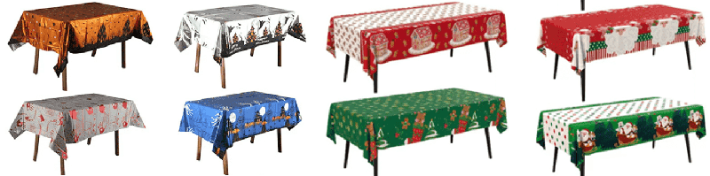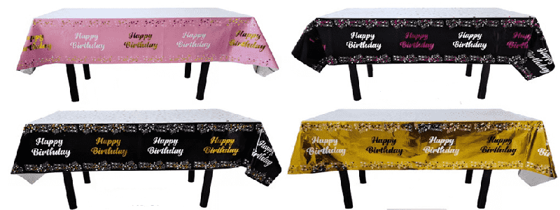 dath tuar ceatha, éadaí boird scragall le hainmhithe cartúin agus patrúin císte, atá oiriúnach do pháirtithe lá breithe leanaí; óir, airgead, dath léasair le réaltaí agus patrúin litreacha, atá oiriúnach do pháirtithe lá breithe do dhaoine fásta, comóradh comóradh, páirtithe chailín, etc., is féidir iad a shocrú i dtáblaí bia teaghlaigh, táblaí páirtí óstáin, táblaí picnic lasmuigh agus radhairc eile.