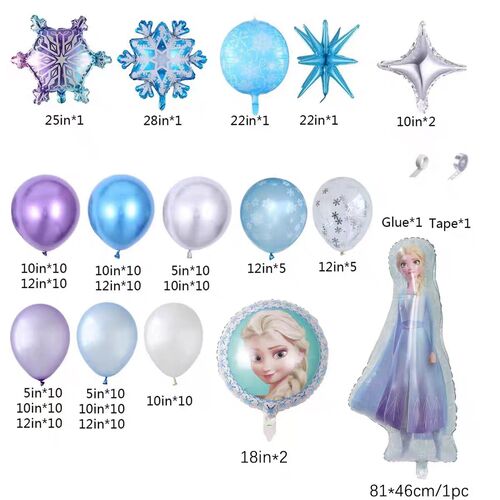 Mar gheall ar an éileamh atá ar an scannán Reoite ar fud an domhain, tá margadh ollmhór ag an sraith seo freisin. Chomh maith leis an sraith áirse balún seo, tá sraith bheag balún laitéis téama Reoite seolta againn freisin, sraith bheag balún scragall le téamaí Reoite agus mar sin de.
