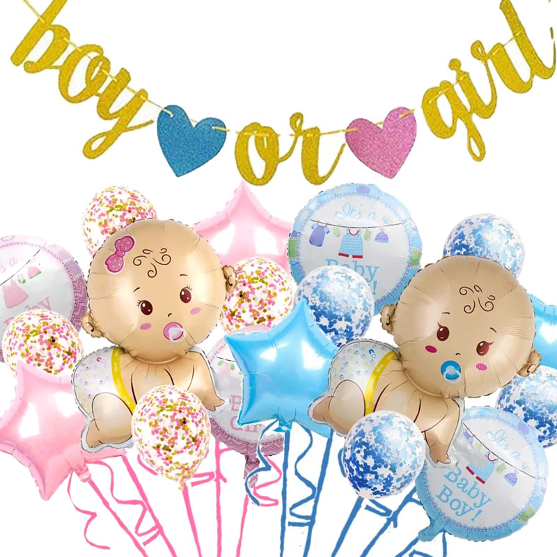2. Díolachán pacáiste beag:Inscne nochtann pacáiste balún scragall téama. Cuirimid pacáistí balún meaitseála ar fáil freisin le haghaidh balúin scragall inscne. Cuimsíonn an pacáiste seo de ghnáth balún scragall cartún do bhuachaillí nó do chailíní, balúin scragall bhabhta 18-orlach, balúin scragall réalta 18-orlach, agus balúin laitéis sequined 12-orlach. Is féidir ár bpacáiste a shaincheapadh de réir riachtanais an chustaiméara chun freastal ar riachtanais gach custaiméara. Tá an pacáiste seo foirfe do gach ócáid, cibé an páirtí baisteadh leanbh nó páirtí nochtann gnéis é, is féidir leis spraoi a chur le páirtí ag ceiliúradh nuabheirthe.