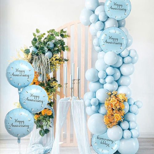 Tá anComóradh sona balún trealamh garlandTá sé níos seiftiúla fós, ag comhcheangal balúin de chruthanna agus dathanna éagsúla chun bláthfhleasc ildaite a chruthú. Is féidir é a chrochadh ar an mballa nó a mhaisiú mar áirse sa doras, rud a fhágann go bhfuil an t-ionad ceiliúrtha iomlán bríomhar. Cibé an cruinniú teaghlaigh beag nó ceiliúradh gnó mór é, is féidir leis na maisiúcháin balún scragall chomóradh sona seo ról uathúil a imirt agus a bheith mar bhuaicphointe na hócáide. Ina theannta sin, soláthraímid seirbhísí saincheaptha pearsantaithe freisin. Má tá patrúin speisialta, dathanna nó ceanglais mhéide agat, is féidir leat cumarsáid a dhéanamh linn. Déanfaimid ár ndícheall freastal ar do chuid riachtanas agus cruthóimid scéim maisiúcháin chomóradh uathúil duit.