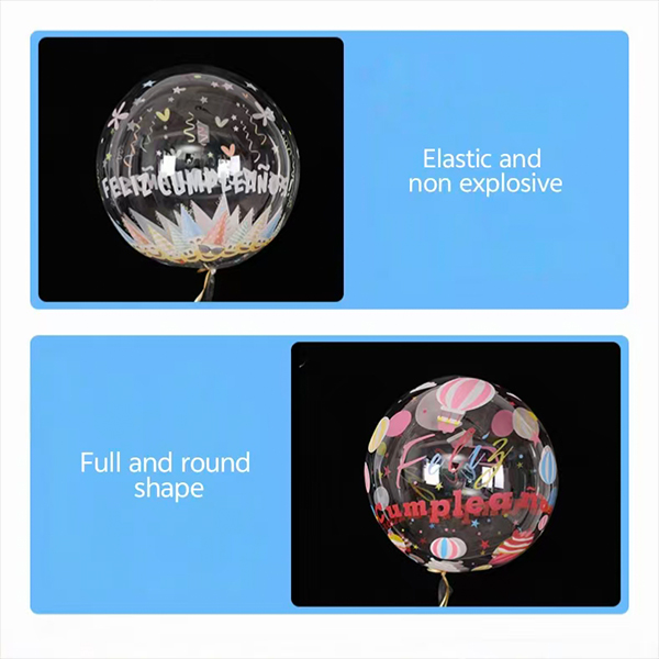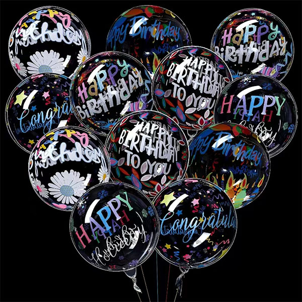 Tá dearadh solúbtha ag balún Breithlá Sona Bobo agus tá go leor stíleanna mar phríomhphointe aige. Trí stíleanna difriúla de ghreamáin “lá breithe sona” a chur ar dhromchla an bhalúin shoiléir, is féidir le daoine maisiú pearsanta a dhéanamh. Tá go leor roghanna ag na greamáin. Is cineálacha óir, airgid, dubh, dearg agus datha iad seo. Is minic a bhíonn corónacha, spéaclaí fíona, croíthe agus bronntanais acu mar dhearaí. Tá an cuma níos spraíúla agus níos nua -aimseartha. Ligeann an cineál greamáin do dhaoine é a dhéanamh de láimh. Is féidir leis athrú go tapa le haghaidh téamaí éagsúla páirtí nó tacair datha. Tá sé úsáideach agus cruthaitheach. Buaileann sé le go leor cineálacha riachtanas blas agus maisiúcháin.