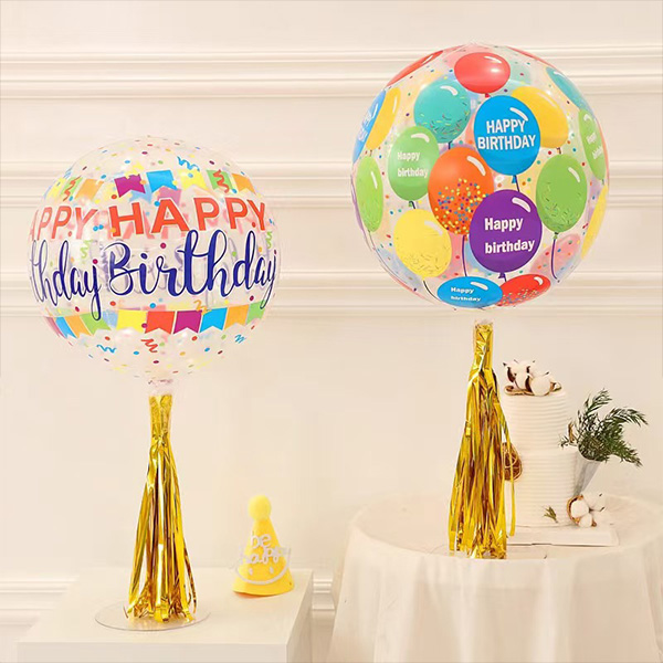 Nuair a chuirtear confetti taobh istigh den lá breithe sona trédhearcach, déanann balún Bobo an balún cuma níos mó ar ghluaisne agus níos saibhre i sraitheanna. Bogann an confetti nuair a ghluaiseann an balún. Taispeánann sé éifeacht amhairc lonrach. Is maith an rud é atmaisféar páirtí a dhéanamh atá geal agus sona. Is féidir leis an mbalún úsáid a bhaint as confetti miotail datha aonair nó go leor dathanna measctha. Fágann an bheirt acu go bhfuil cuma níos nua -aimseartha agus níos fine ar an mbalún. Is féidir leis a bheith mar phríomhphointe le haghaidh balla cúlra nó le haghaidh áirse.