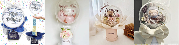 Is féidir ceann amháin nó níos mó a chur taobh istigh den bhalún Bobo. Is bealach clasaiceach é chun mothú rómánsúil a thaispeáint. Tá an balún soiléir cosúil le clúdach. Fágann sé go bhfuil na bláthanna ag breathnú níos geal agus níos áille. Ciallaíonn rósanna dearga paisean. Ciallaíonn rósanna bándearg bog agus milis. Tá an cuma níos fearr le soilse LED. Is bronntanas maith é do chailín ar a lá breithe.