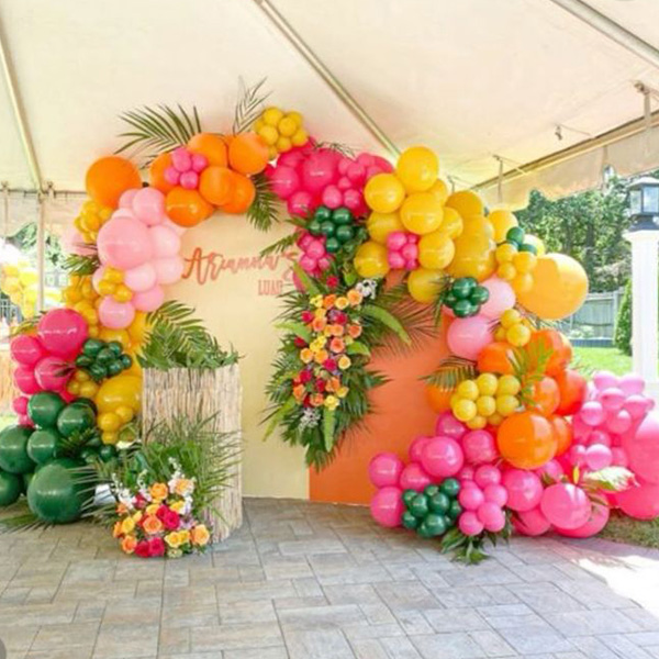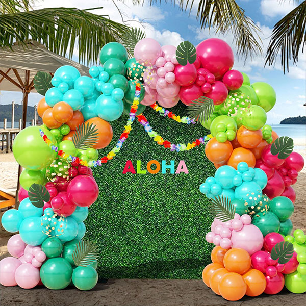 Tá an trealamh garland balún Haváís seo déanta as balúin ildaite laitéis. Déanann na dathanna bríomhara foirfe do pháirtithe lá breithe leanaí. Tá sé ar fáil freisin i stíleanna éagsúla. Is féidir Feisteáin Áirse Balún Trópaiceacha Chustaim a shaincheapadh agus a chur le chéile de réir do stíl atá ag teastáil. Ná bíodh drogall ort do dhearaí uathúla féin a chruthú agus triail a bhaint astu le go n-éireoidh go hiomlán le do chéad imeacht eile.