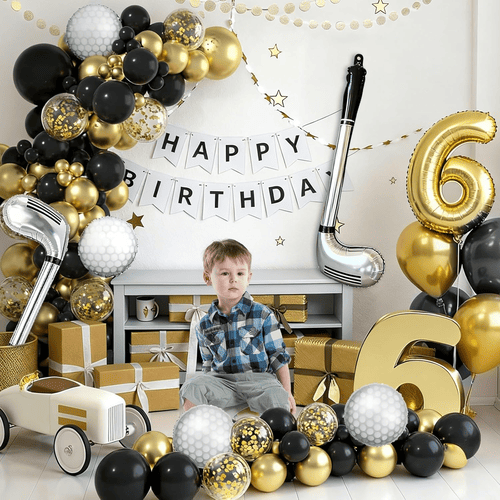 Seachas na balúin, is féidir leat roinnt gabhálais a chur leis freisin chun an stíl a chur leis, mar chúlra téama gailf nó maisiúcháin le téamaí eile. Is féidir leat na balúin sa trealamh a úsáid freisin chun éifeachtaí eile a chruthú. Mar shampla poll i sraith balún scragall amháin nó poll i sraith balún laitéis amháin. Is féidir le gach ceann acu an éifeacht foirfe a dhéanamh ar do pháirtithe.
