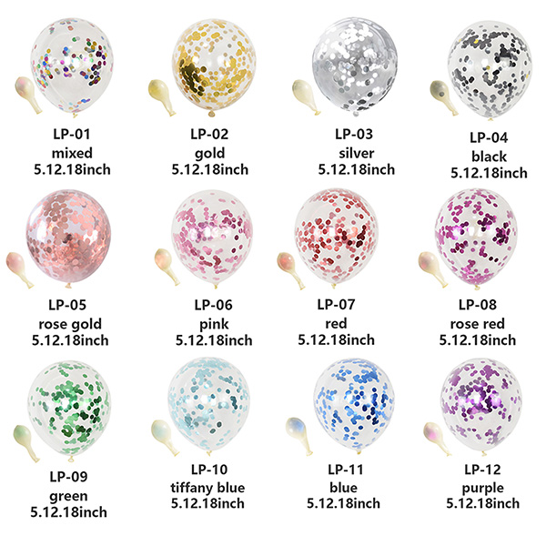 Is iad ár bpríomhmhéideanna balúin confetti ná 5 orlach, 10 orlach, 12 orlach, 18 orlach, 36 orlach. balúin confetti bhaineann freisin le balúin LaTeX, tá balúin confetti roinnte ina dhá chineál, tá sé ar cheann scragall alúmanaim balúin confetti, tá an ceann eile balúin confetti páipéar.Foil glitter cuma níos gile, agus scragall páipéar balúin cuma níos boige.Go hiondúil, is féidir an dá chineál balúin Confetti a úsáid ina n-aonar do pháirtithe lá breithe, páirtithe bainise, páirtithe, etc. go leor dath ar an sraith balún a bheidh, a dhéanamh freisin ar an maisiú níos foirfe agus álainn.