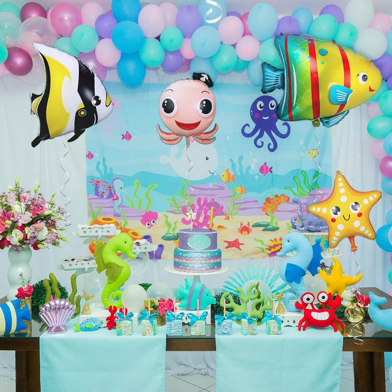 Tá balúin scragall sraith farraige ar fáil i dathanna éagsúla agus cineálacha ainmhithe. Is féidir balúin scragall téama farraige a úsáid le haghaidh páirtithe téamaí farraige, páirtithe leanbh, laethanta breithe, póstaí, ceiliúradh, céimeanna, páirtithe samhraidh haváíais trópaiceach, páirtithe rannpháirtíochta, comóradh, páirtithe téamaí farraige, etc. Is féidir le dathanna geala agus patrúin gleoite atmaisféar sona a shocrú, súile na bpáistí a mhealladh, agus an páirtí a dhéanamh níos taitneamhaí. Tá an balún scragall saol mara gleoite agus fheictear seo iontach do pháirtithe lá breithe nó le húsáid mar thacaíocht grianghraf. Is féidir leo níos mó spraoi a thabhairt duit i ndáiríre.