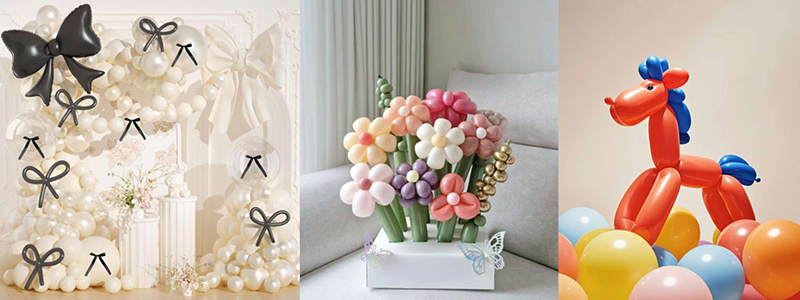 Is féidir méideanna éagsúla a úsáid le chéile. Is féidir balúin bheaga a úsáid mar shonraí maisiúcháin. Is féidir balúin mhóra a úsáid le haghaidh áirse balúin nó garland balúin. Breathnaíonn an éifeacht buailte. Nuair a úsáidtear é le balúin Bobo, balúin datha mhiotalacha nó balúin scragall, tá níos mó sraitheanna ag an cuma. Éiríonn an stíl níos saibhre. Tá an úsáid an -leathan. Is féidir é a úsáid ag póstaí. Is féidir é a úsáid ag páirtithe lá breithe. Is féidir é a úsáid freisin ag imeachtaí saoire. Oibríonn sé mar phríomh -mhaisiú nó mar mhaisiú sonraí.