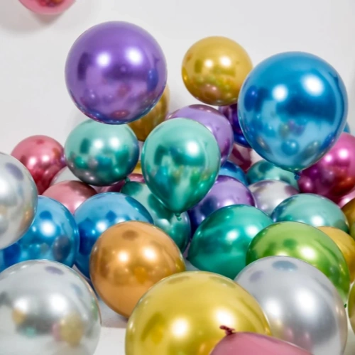 Úsáidtear balúin laitéis mhiotalacha go forleathan mar gheall ar a gcuid bailchríoch. I gcomparáid le balúin caighdeánach, tá cuma níos machnamhaí ag an dromchla, rud a fhágann go bhfuil siad níos oiriúnaí le haghaidh maisiú agus taispeáint miondíola.