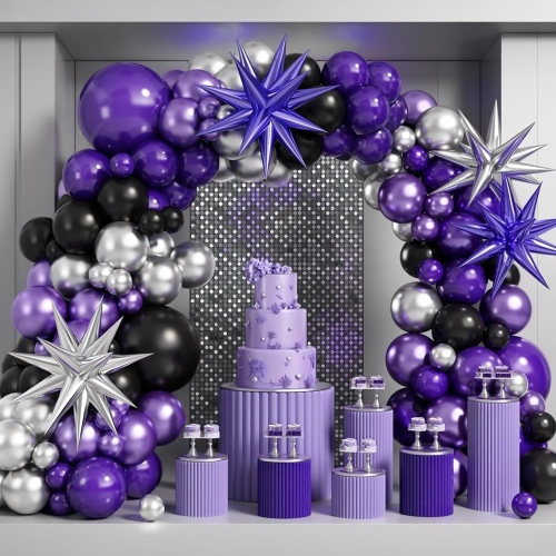 Cuirimid feisteáin garland balúin corcra agus dubh ar fáil a shaincheapadh. Más mian leat na tacair balúin a dhíolann tú bíodh carachtar agat. Molaim duit pacáiste balún eisiach a shaincheapadh le do lógó féin nó do do shiopa.