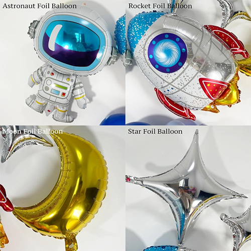 De ghnáth tá méideanna éagsúla balúin laitéis, balúin scragall, línte iascaireachta, ribíní agus gabhálais eile sa gharland balún spáis seo, tá an t-ábhar sonrach faoi réir socruithe pacáiste éagsúla.