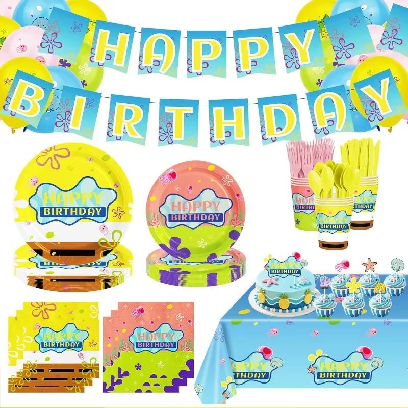 I míreanna páirtí na bpáistí, is rogha spraíúil agus úsáideach é an tacar boird SpongeBob. Tá carachtair cáiliúla aige mar SpongeBob agus Patrick mar an príomhdhearadh. Tagann an tacar le plátaí, cupáin pháipéir, naipcíní, agus uirlisí. Taispeánann na plátaí SpongeBob le aoibh gháire mór agus Patrick le aghaidh greannmhar. Cuireann an dearadh smugairle róin, feamainn, agus sliogáin chun stíl farraige a thabhairt. Tá na dathanna geal agus saibhir i sraitheanna. Leanann na cupáin pháipéir agus naipcíní an téama céanna. Breathnaíonn an tábla iomlán lán de spraoi aigéin. Úsáideann an earraí boird ábhair shábháilte agus éicea -ábhair. Coinníonn sé stíl gleoite agus tá sé úsáideach freisin. Luíonn sé páirtithe lá breithe, imeachtaí téamacha, nó béilí teaghlaigh. Déanann an tacar “Bikini Bottom Feast” sona do na páistí agus tugann sé rogha páirtí éasca agus ardcháilíochta do thuismitheoirí.