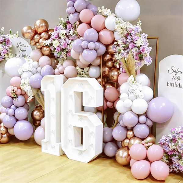 Tugtar an sé bliana déag milis ar an 16ú breithlá agus is pointe fáis suntasach é, mar shiombail don aistriú breise ón óige go dtí an ógántacht. D'fhonn cabhrú níos fearr le teaghlaigh páirtithe a shealbhú chun an lá speisialta seo a cheiliúradh, sheol ár n-mhonarcha go speisialta áirse milis 16 balún chun freastal ar riachtanais cheannaigh na dtomhaltóirí. Tá an sraith áirse garland seo comhdhéanta de balúin laitéis, balúin scragall, meirgí lá breithe, boscaí balún, pointí gliú agus gabhálais eile. Tá ár balúin laitéis déanta as rubar nádúrtha, tá balúin scragall déanta as ábhar scragall alúmanaim ardchaighdeáin, agus déantar iniúchadh cúramach ar gach sraith de mhaisiúcháin 16ú lá breithe chun na caighdeáin cháilíochta is airde a chinntiú. Tá an balún buan, resistant pléasctha, gan smál agus oiriúnach le haghaidh líonadh aeir agus héiliam araon. Chomh maith leis an áirse balún seo, tá áirse garland balún déanta againn freisin le 16 solas faoi stiúir. Déanann an 16 solas faoi stiúir do lá breithe níos mó súl, agus tá trí mhodh mar stiúir le roghnú as. Tá sraith balún priontála laitéis lá breithe 16 bliana d'aois againn freisin. Úsáidtear an tacar seo de ghnáth i mbalúin laitéis 12 orlach. Tá an patrún soiléir agus ní éasca le damáiste. Is féidir é a úsáid ar feadh i bhfad. Táimid tar éis na pacáistí seo a chruthú chun freastal ar do chuid riachtanas le haghaidh ócáidí éagsúla agus móra ag an am céanna, ag cur atmaisféar áthasúil le do pháirtí.